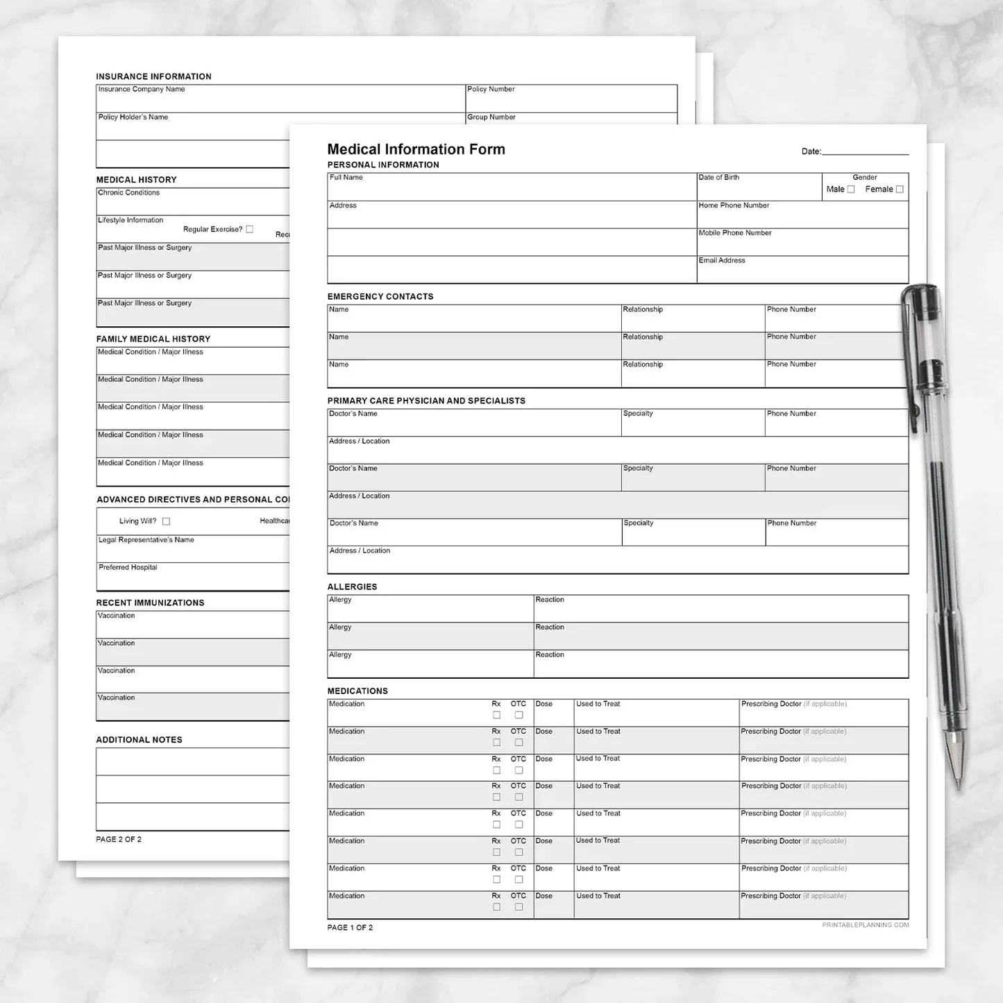 ☐ Primary care doctor and specialist contact information
